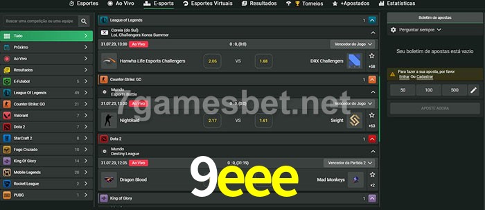 O 9eee oferece uma grande seleção de opções de apostas em e-sports com probabilidades competitivas